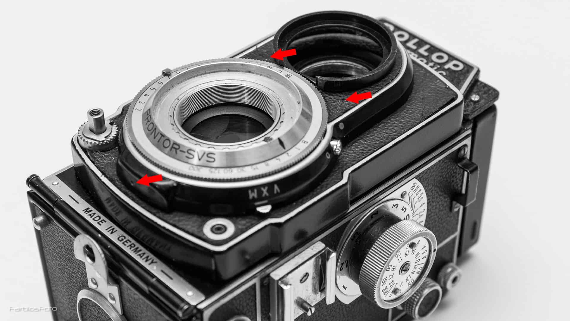 Anders als bei der Rolleiflex 3.5, wo es extrem wichtig ist, dass Verschlusszeit und Blende auf eine bestimmte Position (1/500s und f22) gestellt werden müssen, da sonst der Anbau des Deckels schwierig wird, ist es bei der Lipca Rollop Automatic zu vernachlässigen. Dies liegt daran, dass bei diesem Modell die Verschlusszeit und Blende direkt an der Mechanik eingestellt werden und nicht über den Gehäusedeckel. Es gibt beim Zusammenbau jedoch zwei Pins auf die man achten muss. Darauf komme ich dann später zurück.